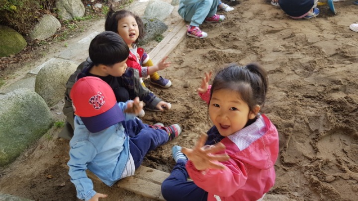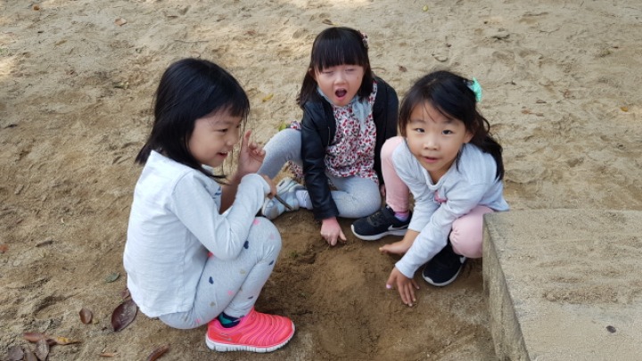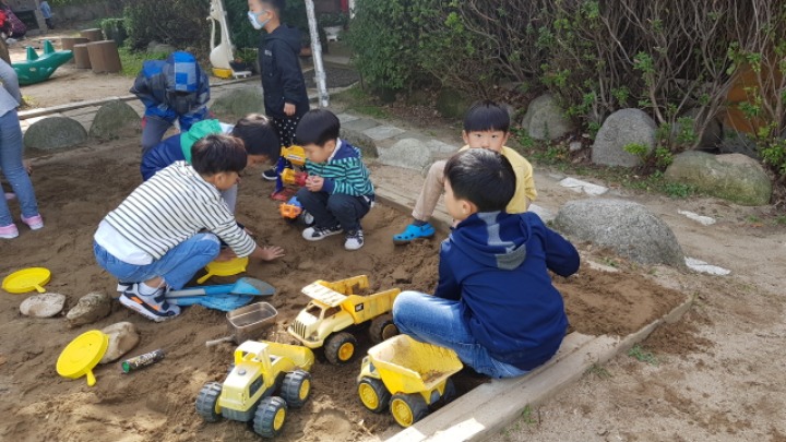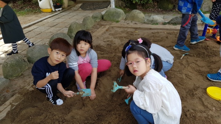 모래놀이는 실내보다도 넓은 공간과 자유로움을 줄 수 있어 좋습니다.