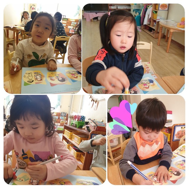 교실에서도 친구들과 점점 친해지며 서로를 알아가고 맞춰가며 이해도 해주고 친구들과도 예쁘게 보내고 있어요.