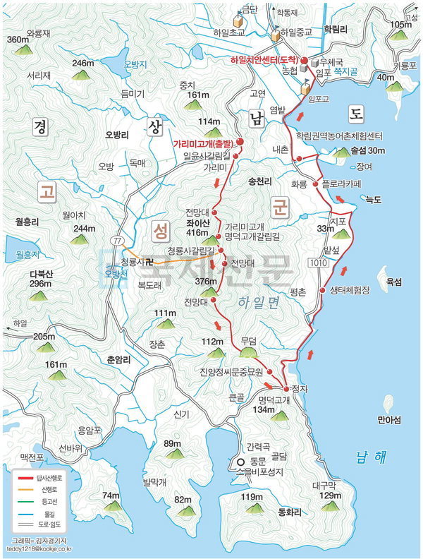 ■ 산행코스 : 가리미고개 ~ 좌이산 ~ 명덕마을 ~ 생태체험장 ~ 솔섬 ~ 하일치안센터 (약11km 5시간 소요)