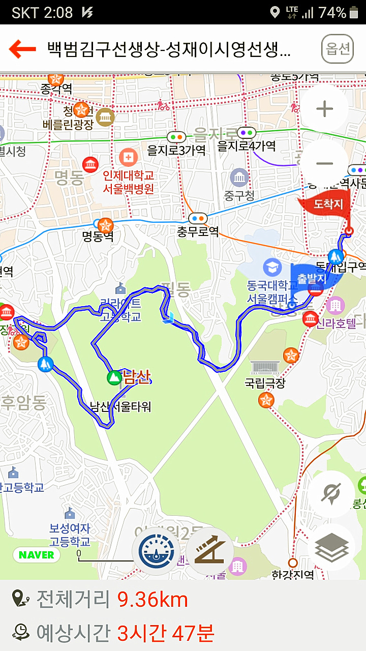 걸어서 출근을하곤했는데 백범광장을 지나 회현동으로 내려가는 코스로 기억합니다.