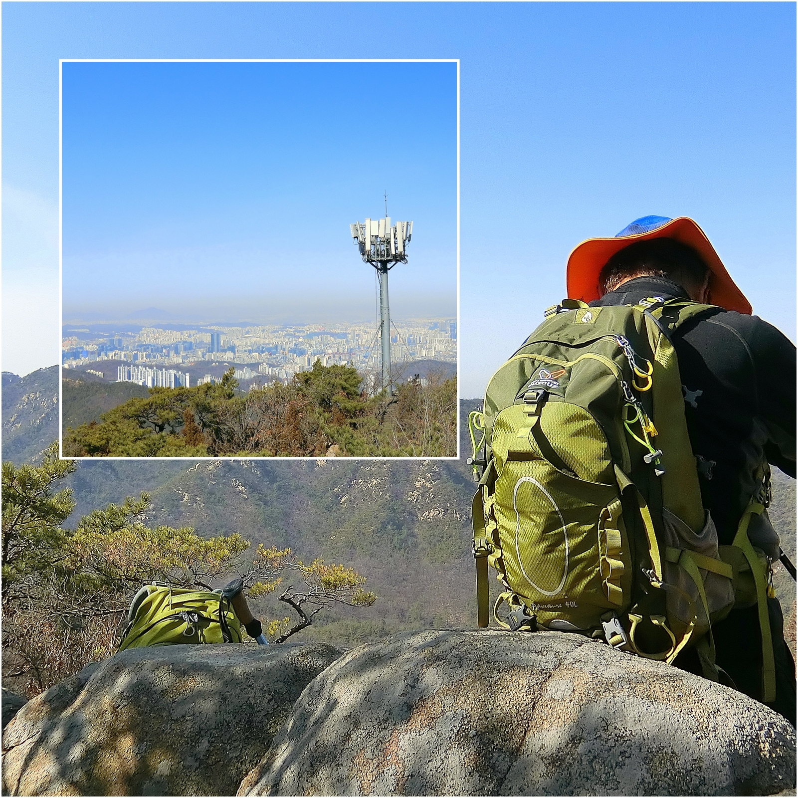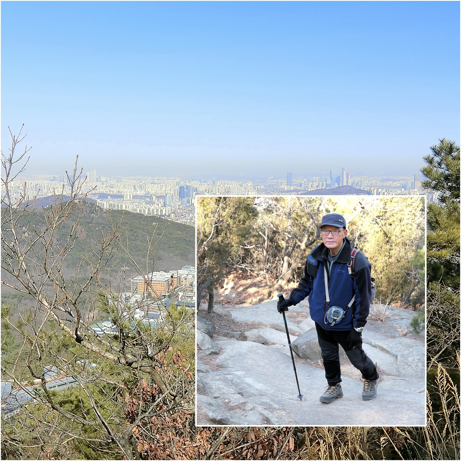 계속 산행하면서 서울대 배경으로 동료가 담은 오늘의 나의 산행차림, 어떠하나요?