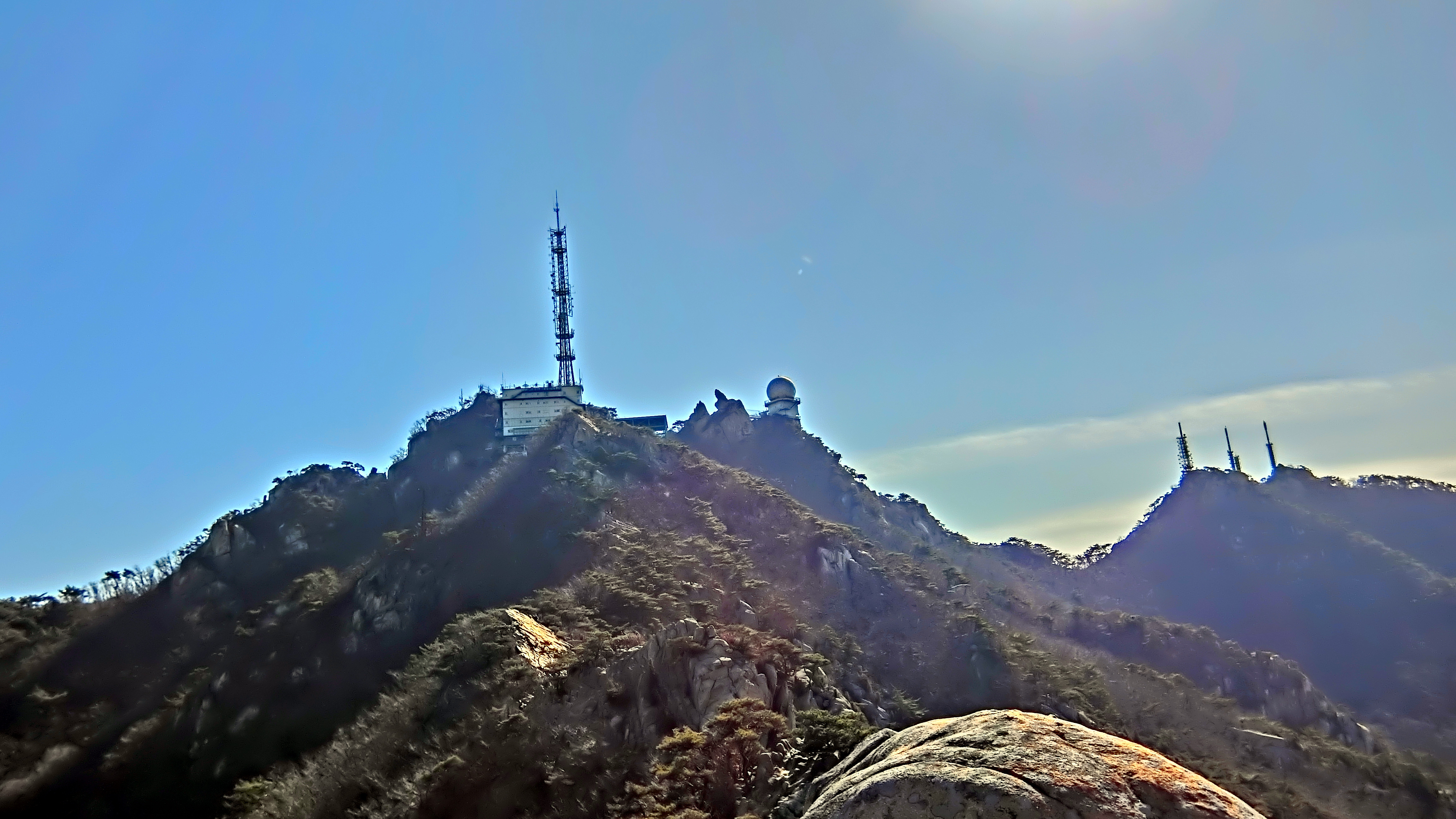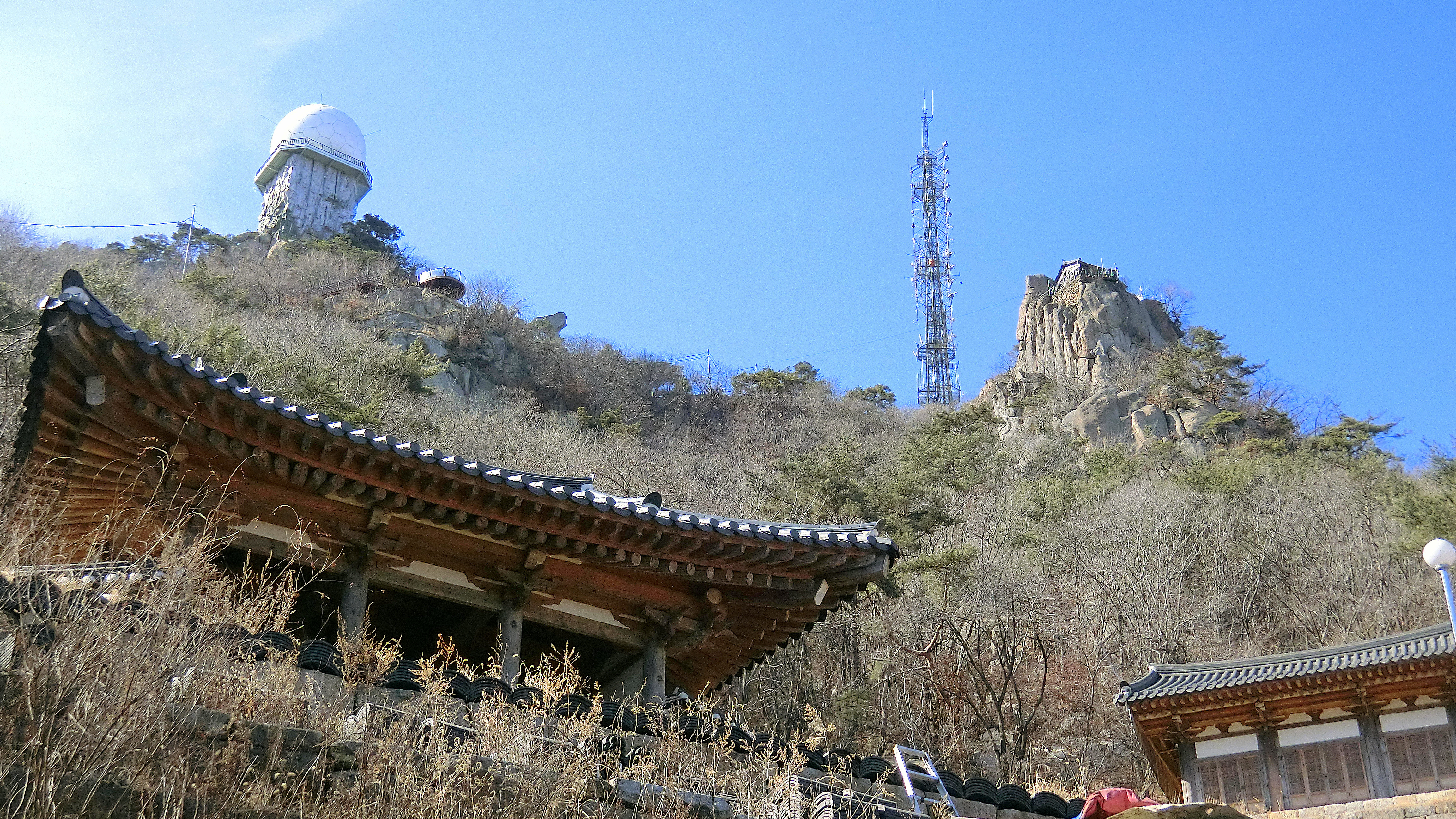 계속 올라가다 보니 전화기 수신을 도와주는 설비도 만나고, 반달곰(이병철)의 뒤태 너머로 정경을 보게