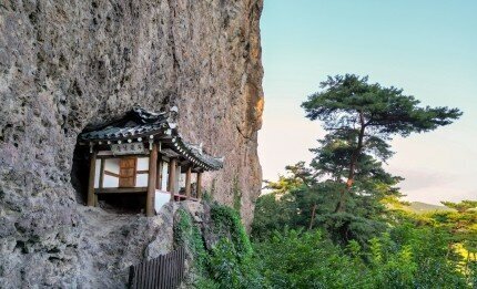 전북 고창군 아산면에 있는 아산초등학교 뒷산 절벽에는 바위를 깎아 세운 ‘두암초당’이 있다.