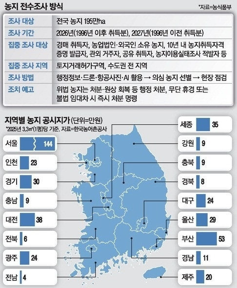 ◇전국 195만㏊ 농지 대상