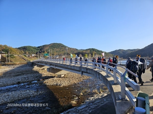 DMZ 평화의 길을 도보로 이동하고 있는 자유평화대장정 6기의 모습.(23.12)