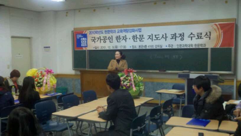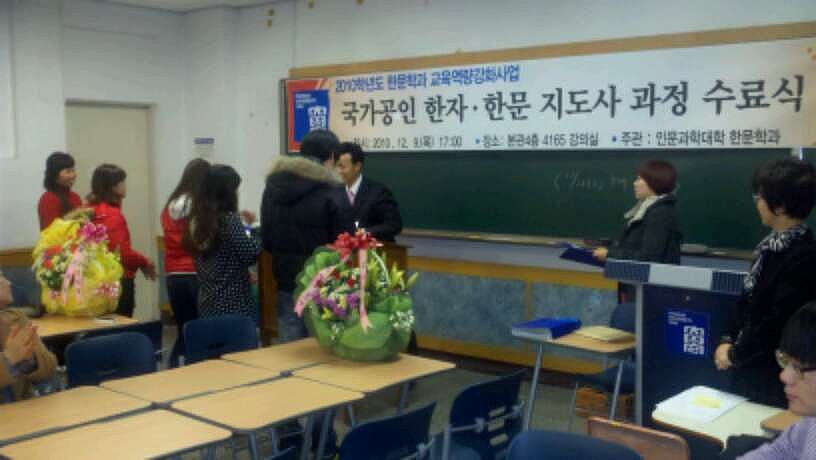 교육역량강화사업 조선대학교 한문학과 (국가공인 한문지도사 과정 수료식)-대한검정회 작성자해뜰|작성시간11.04.09|조회수243 목록 댓글 1 글자크기 작게가 글자크기 크게가 다음검색 현재 게시글 추가 기능 열기 북마크 공유하기 신고 센터로 신고 댓글 댓글 1 댓글쓰기 답글쓰기 댓글 리스트 작성자정송 | 작성시간 14.02.26 언능 다시 한자공부 다시 하고 싶다... 댓글 전체보기
