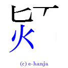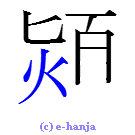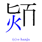 뜻을 나타내는 불화(火(=灬)☞불꽃)部와 음(音)을 나타내는 글자 頃(경)이 합(合)하여 이루어짐
