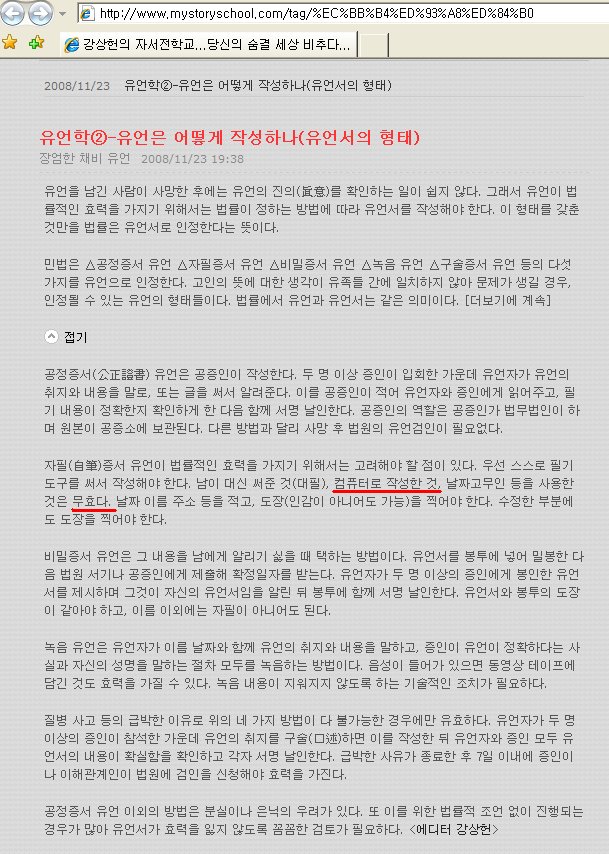 PS) 제가 쓴글에 한나라 알바들이 어처구니없는 댓글을 달더군요. 유언의 법률적 효력은 상속의 문제에 쓰이는 용도일 뿐이라고요.