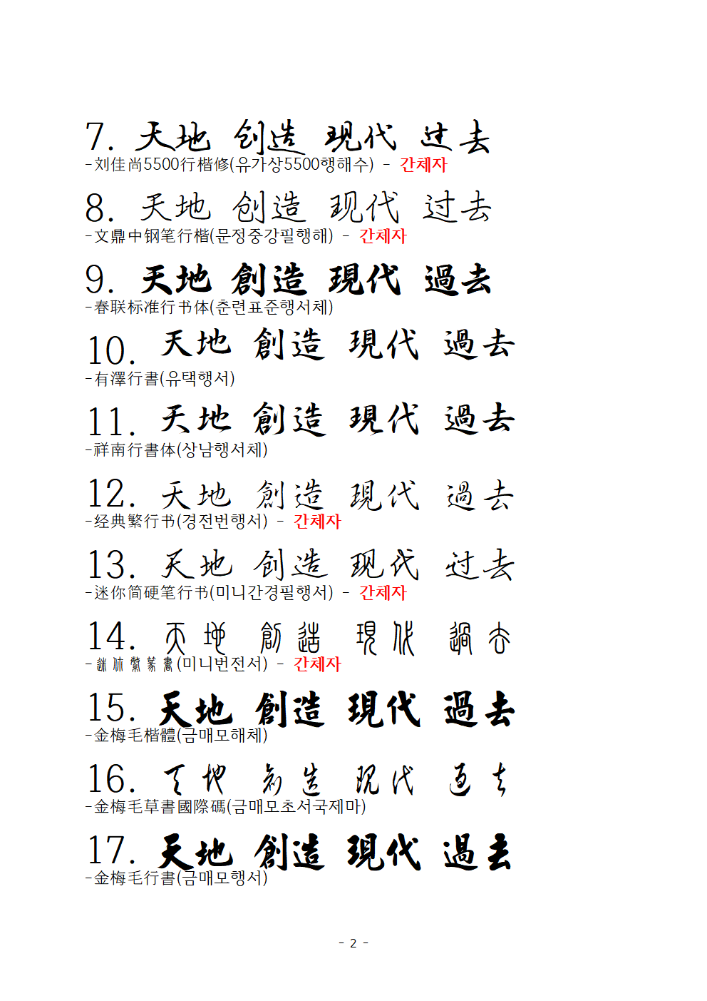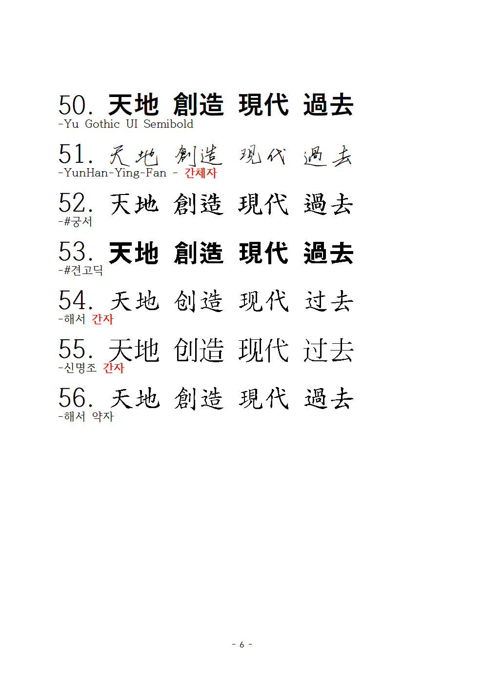 번체자가 해당 서체로 변환이 되지 않는 경우 대부분 간체자로 바꿔주면 됩니다.
