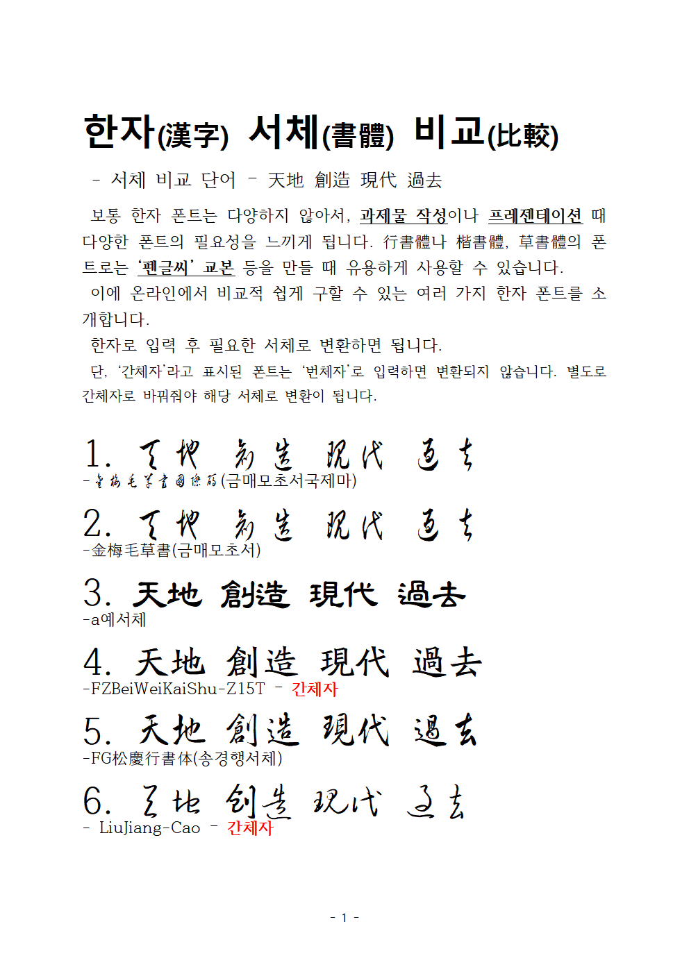 온라인에서 구하고자 하면 정말 다양한 폰트를 구할 수 있으나, 중국에서 제공하는 폰트는 대개 '간체자'를