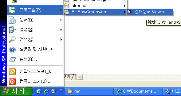시작⇒프로그램(P)에서⇒BizFlowGroupware⇒결재문서 Viewer를 실행하면 백색바탕화면이 실행되었다.
