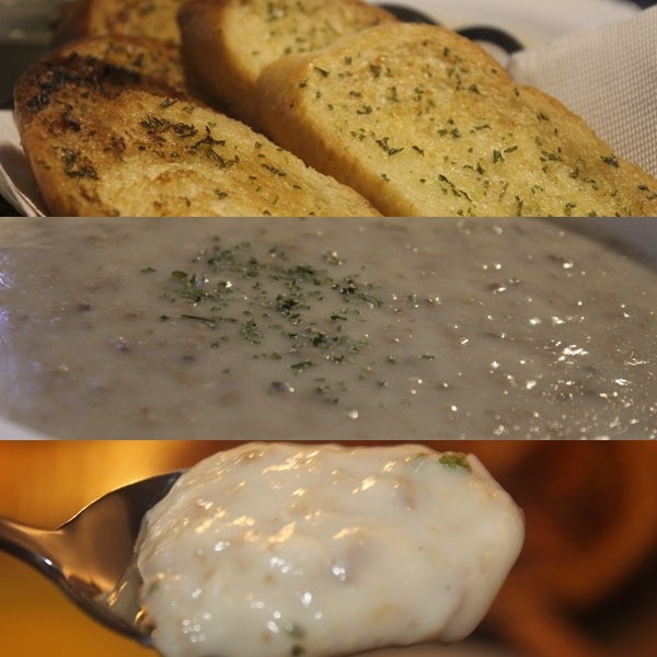 먼저 기본으로 세팅되는 마늘빵과 양송이 크림스푸~