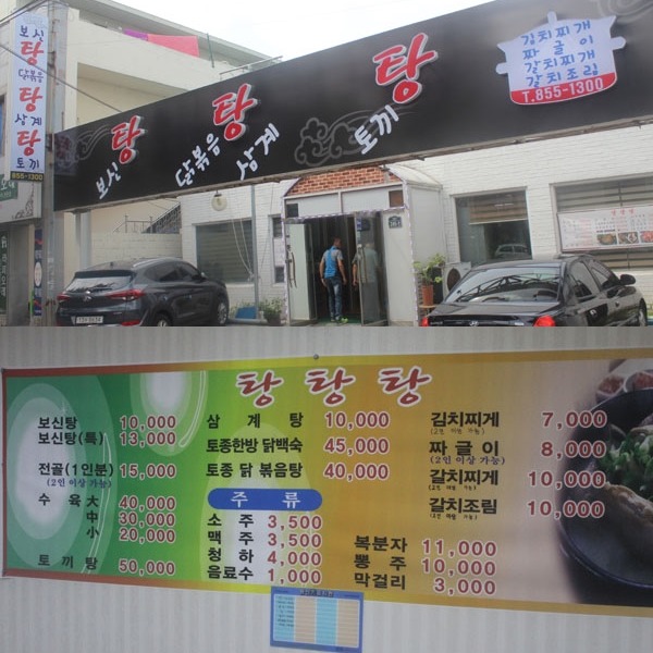 갈치조림, 닭볶음탕, 보신탕, 김치찌개 등이