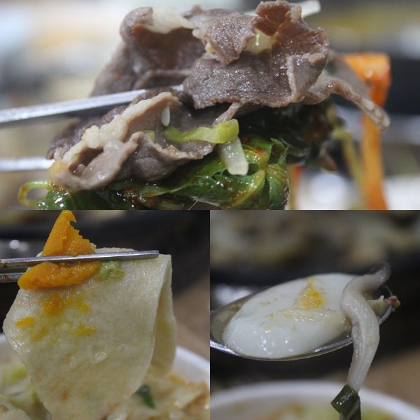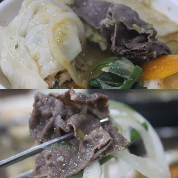 소고기를 넣어가며 고기도 즐기고, 야채와 왕만두를
