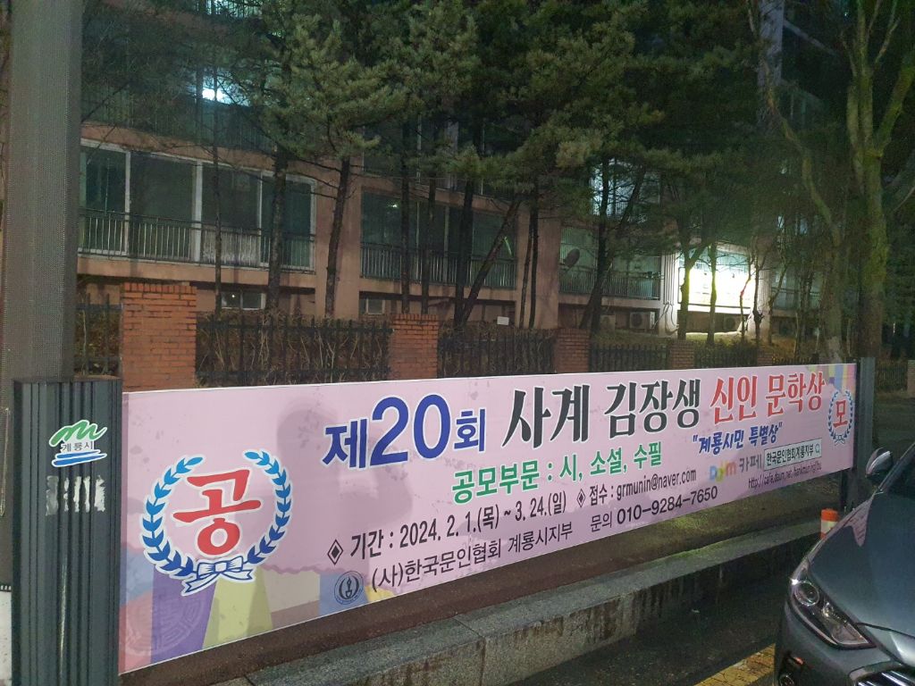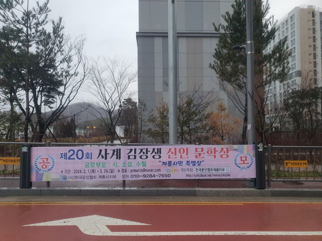 2024년 제20회 사계 김장생 신인문학상 공모 현수막 작성자도지희|작성시간24.02.14|조회수461 목록 댓글 0 글자크기 작게가 글자크기 크게가 다음검색 현재 게시글 추가 기능 열기 북마크 공유하기 신고 센터로 신고 댓글 댓글 0 댓글쓰기 답글쓰기 댓글 리스트
