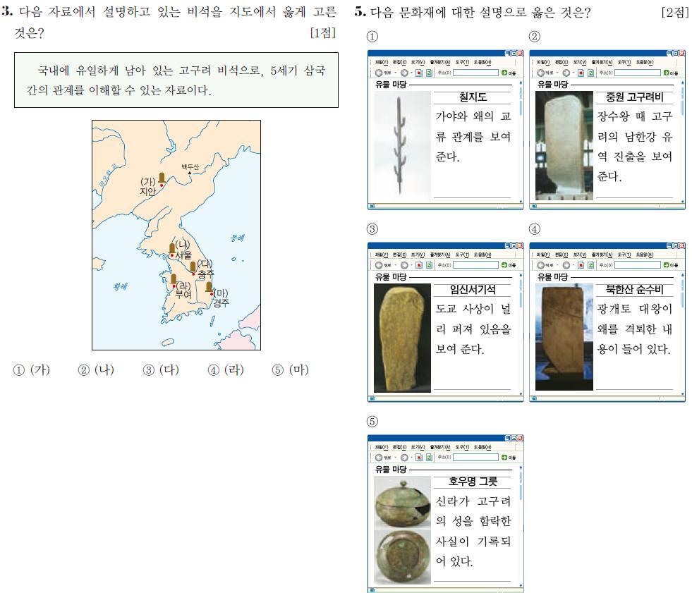 고급에 비해 중급은 답지에 제시한 유물 아래 유물명을 표시해줘 사진으로 어떤 유물인지 모르더라도 유물명만으로도 답을 찾을 수 있어 상대적으로 쉽죠?(물론 고급 1번 문제는 3점 배점이지만 13회 한국사능력검정시험에서는 쉬운 문제에도 3점 배점을 주는 이른바 역배점 원칙이 적용되었다는 것 참고하세요. 따라서 2점 정도가 적당한 배점이었다고 보시면 됩니다.)