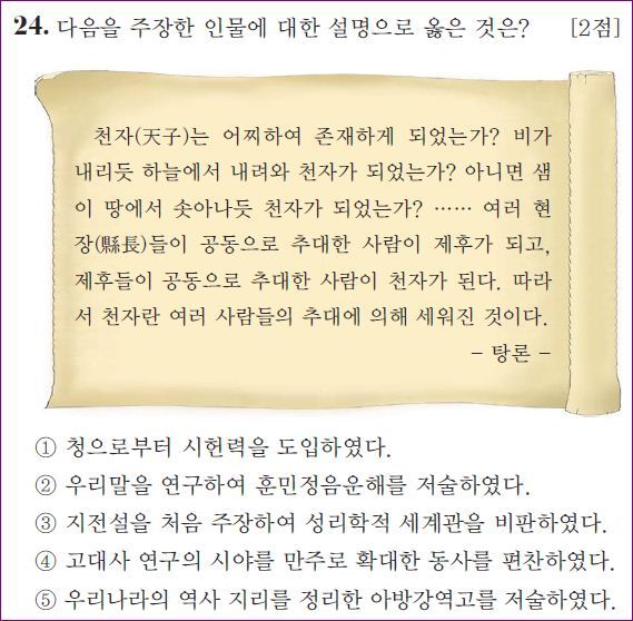 문제에 제시된 자료의 출처가 <탕론>이라는 것에서 정약용을 쉽게 유출할 수 있죠?