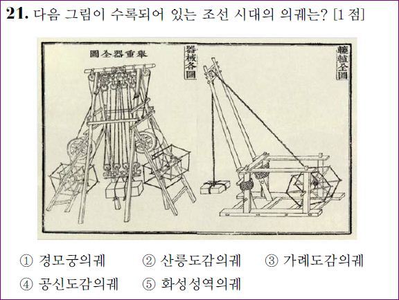 문제에 제시된 그림은 화성 축조에 사용된 거중기입니다.