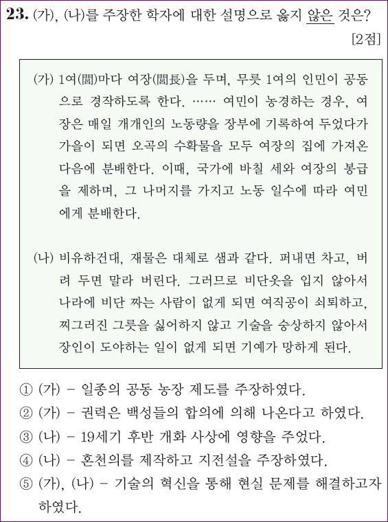 (가)는 1여.....공동 경작, 가을에 수확 후 노동량에 따라 분배하는 토지 제도 개혁론은?
