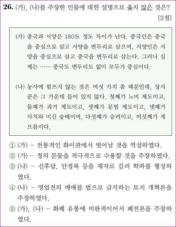 (가)는 중국 중심의 세계관을 비판하고 있죠.