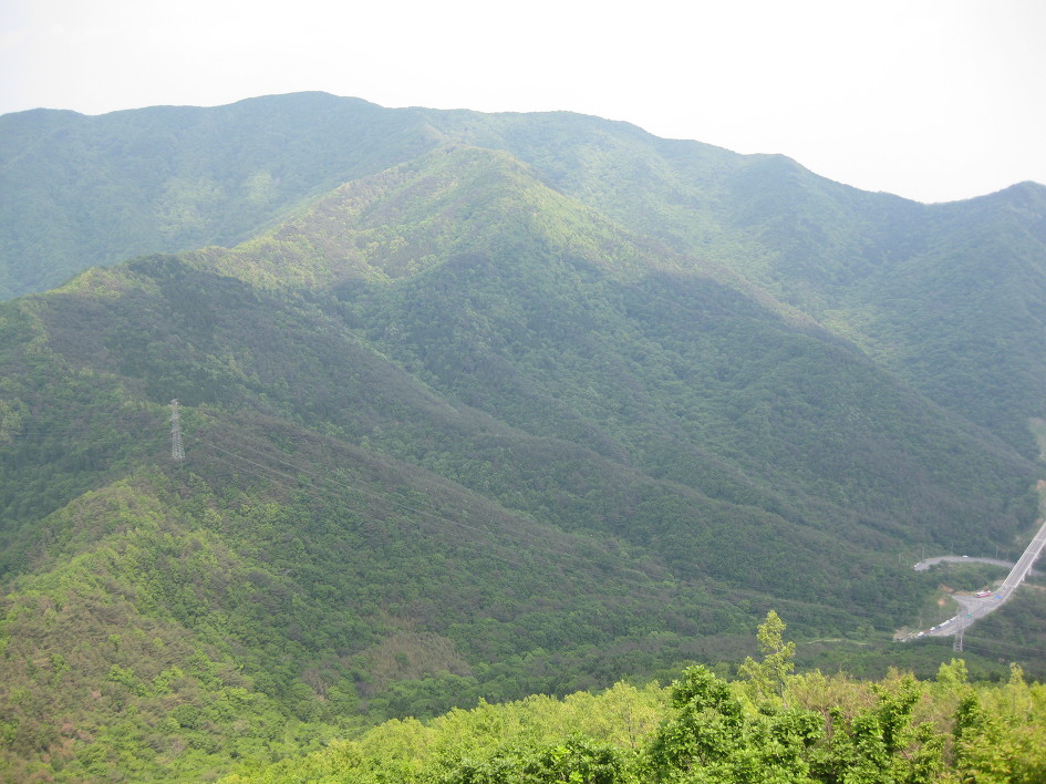 그리고 신선바위에서 바라보는 오늘의 종착지 오른쪽 끝 우리 버스가 보인다.