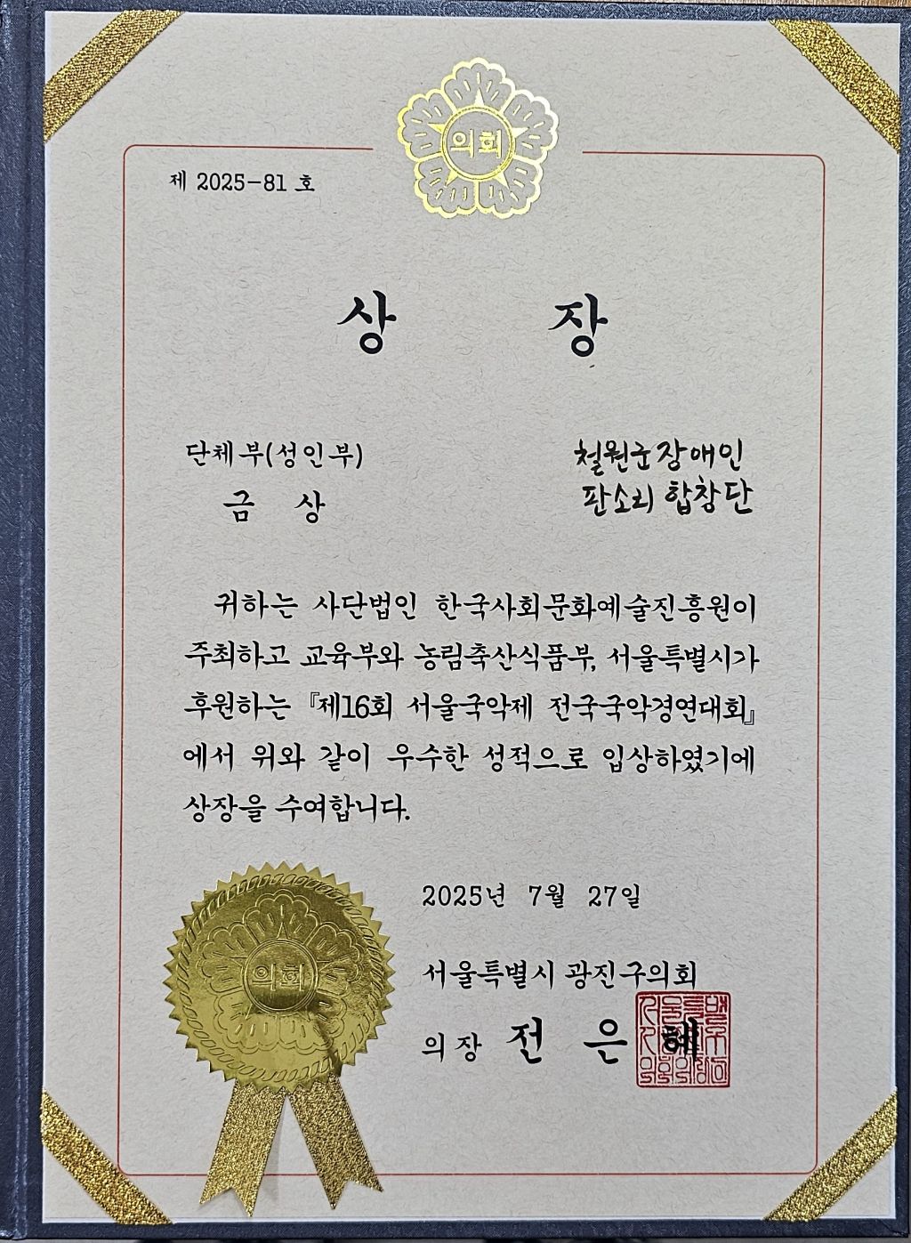 전국국악대회에 참가하여 예상치 못한 성과를 거둔 우리 철원군발달장애인 판소리합창단!
