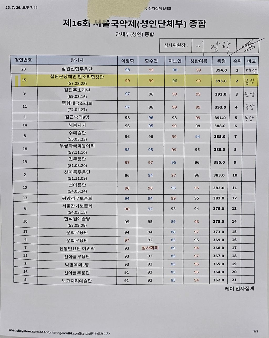 되었다. 또 하나 기쁜 것은 주최측 대회장[판소리전공자]으로부터 2026년 광진구행사때 우리 판소리