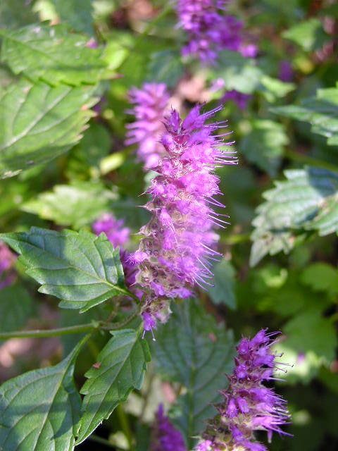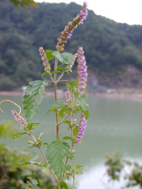 잎은 마주나고 달걀 모양으로 끝이 뾰족하고 가장자리에 둔한 톱니가 있다. 뒷면에 선점(腺點)이 있어 강한 향기를 낸다. 꽃은 9∼10월에 붉은 빛이 강한 자주색 또는 보라색으로 피고 줄기와 가지 끝에 빽빽하게 한쪽으로 치우쳐서 이삭으로 달리며 바로 밑에 잎이 있다.