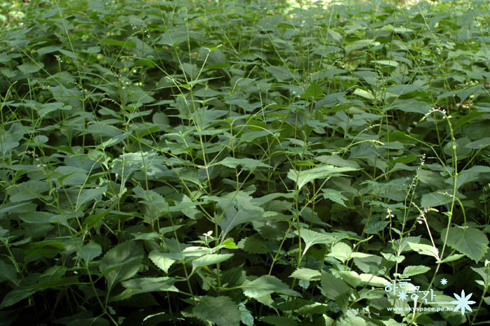 높이는 50~70cm이며 잎은 마주나고 달걀 모양인데 톱니가 있다. 7~9월에 입술 모양의 연한 자주색 꽃이 가지 끝에 수상(穗狀) 꽃차례로 핀다. 유독 식물이며 뿌리는 이겨 파리를 잡는 데 쓴다. 산이나 들의 습한 나무 그늘에서 자라며 한국, 일본, 중국, 히말라야, 동시베리아 등지에 분포한다. 잎은 깻잎 비슷, 꽃은 파리 다닥다닥 붙은 모습.