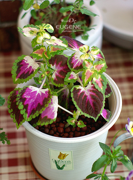 꿀풀과로 원산지인 열대 및 아열대 아시아, 아프리카, 오스트레일리아, 태평양군도에서는 여러해살이이나 온대에서는 한해살이 화초이다. 속명은 그리스어인 koleos(칼집)에서 유래되었다. 주로 관엽식물로서 이용된다. 원예품종으로는 매우 많이 있으며, 녹색, 적색, 분홍색, 우유빛색, 백색 등 여러 가지의 색깔이 단색, 복색 등으로 되어있다.