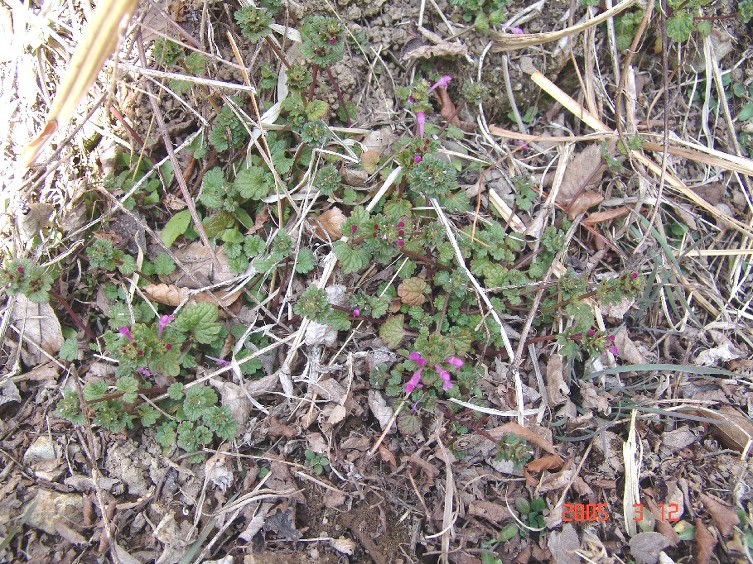 높이는 25~30cm이며, 잎은 마주난다. 4~5월에 붉은 자주색 꽃이 잎겨드랑이에서 윤산(輪 ?) 꽃차례로 핀다. 어린잎과 줄기는 식용하고 전체는 토혈(吐血)과 코피를 멎게 하는 데 쓴다. 밭이나 논에 자라는데 한국, 북아메리카, 일본, 중국 등지에 분포한다. 꽃모양이 광대닮아 광대나물, 잎모양이 코딱지 광주리 닮아 코딱지나물 광주리나물이라고도 한다.