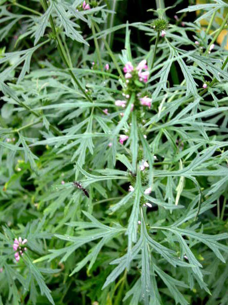 높이는 1미터 정도이며, 잎은 마주나고 잎자루가 길다. 7~9월에 엷은 홍자색 꽃이 윤산(輪?) 꽃차례로 잎겨드랑이에서 피고 열매는 다섯 갈래가 지는 분과(分果)이며 약재로 쓴다. 한국, 일본, 중국에 분포한다.