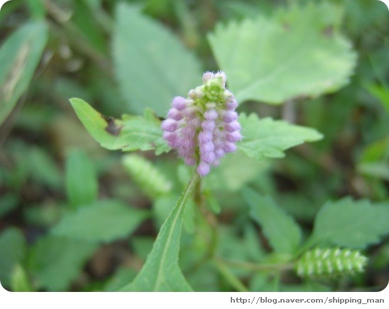 배초향은 꽃이 뺑돌려 피는 윤산화서이고 꽃향유는 꽃이 빽빽하게 한쪽으로 치우쳐서 피고 바로 밑에 잎이 있다.