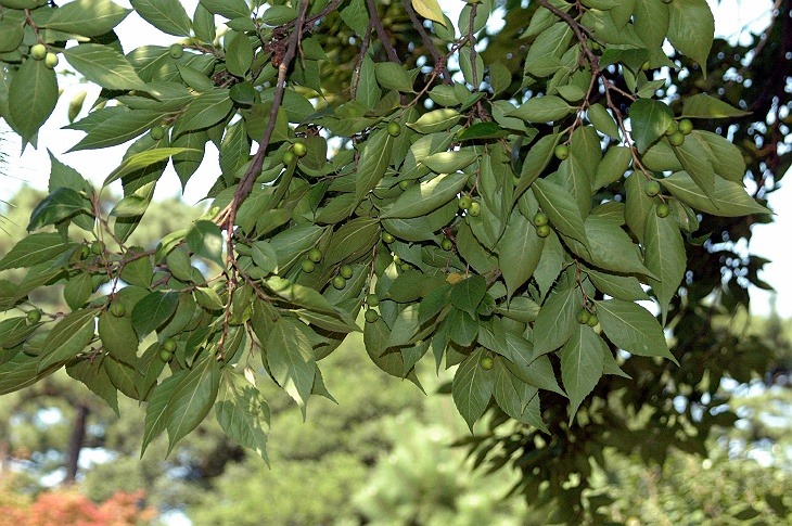 높이는 20미터 정도이며, 잎은 어긋나고 달걀 모양인데 가에 톱니가 있다. 봄에 녹색 꽃이 피고 열매는 핵과(核果)로 10월에 검게 익는다. 열매는 식용하고 목재는 기구(器具)를 만드는 데에 쓴다. 강가나 촌락 부근에서 자라는데 한국의 전남·경남과 대만, 중국 등지에 분포한다.