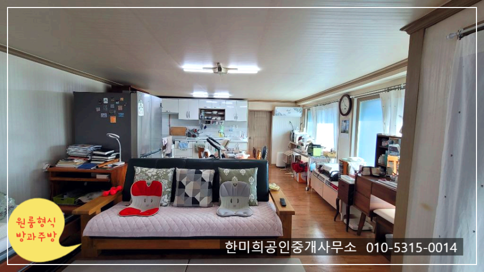 거실겸 방으로 사용하는 공간과 주방이 한 공간으로