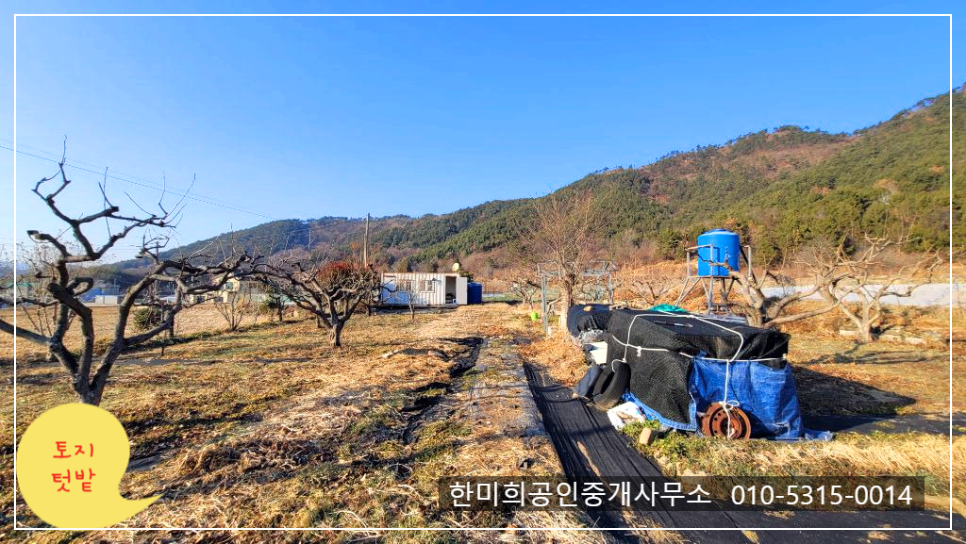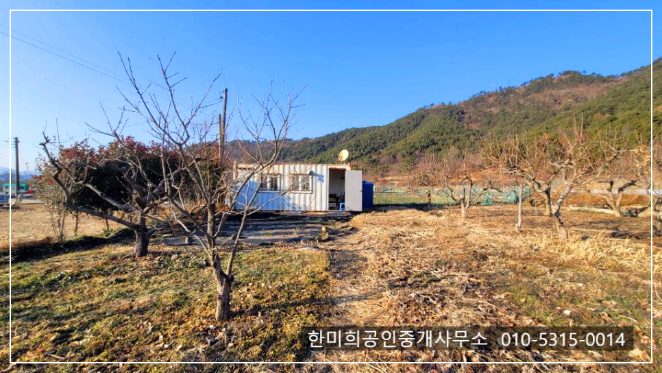 컨테이너가 있고 손질 잘 된 감나무가 있는 텃밭
