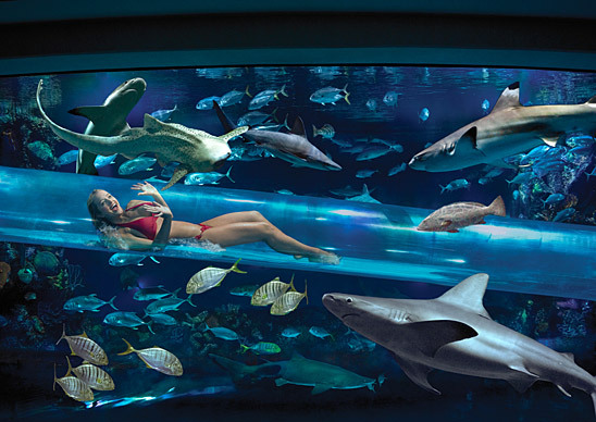 샤크탱크(Shark Tank) 와 그 사이를 이어주는 물 미끄럼틀을 즐기기위해 여름에 특히나 인기있는 호텔이죠.