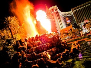 미라지 호텔 앞 정글 속 분화구와 호수를 배경으로 펼쳐지는 화산쇼는 화산 폭팔음과
