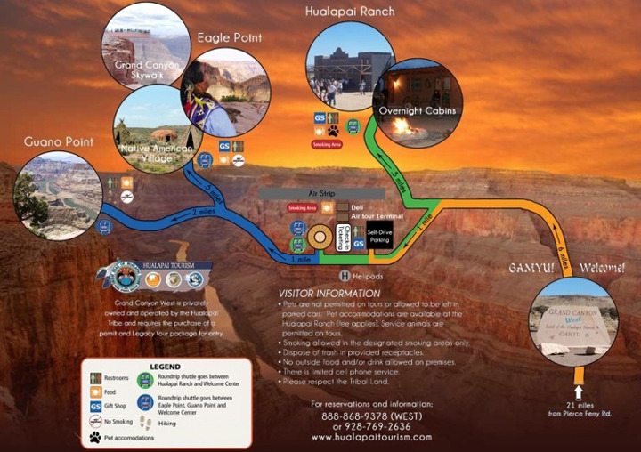 이글 포인트, 인디언 마을 형상, 스카이워크, 구아노 포인트, 후알라파이 렌치를 관광 합니다.