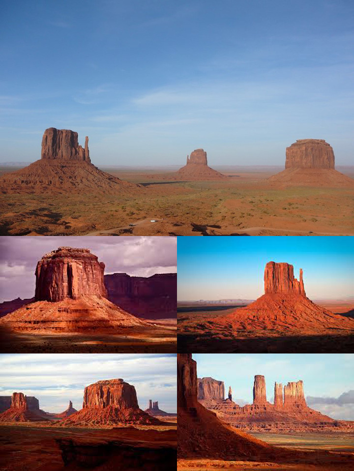 콜로라도 대고원 지대의 유타 와 아리조나 의 경계지점에 위치한 모뉴멘트밸리 는 광활한 대평원 지대에 Butte 라고 불리는 고립된 거대한 암석기둥과 절벽이 자연의 조각물 향연을 펼치는 곳입니다.