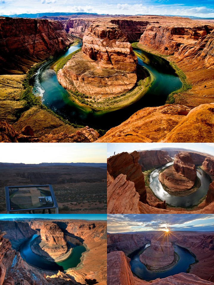 애리조나주 페이지 에는 콜로라도강 이 휘돌며 말발굽 모양으로 새겨 놓은 홀스슈밴드 가 자리하고 있습니다. 협곡 가운데에 있는 바위가 말발굽 모양을 닮았다고 해서 Horse Shoe Bend 라고이름 붙여졌다고 합니다. 가파른 낭떠러지 너머로 말발굽 모양의 계곡이 모습을 드러내고, 까마득한 아래쪽으로는 물길이 휘돌며 아슬아슬하면서도 황홀한 풍경을 선사합니다.