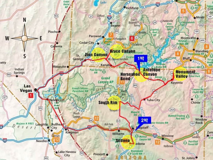 (1일차) : 라스베가스 -> 자이언캐년 -> 브라이스캐년 -> 페이지(숙박)