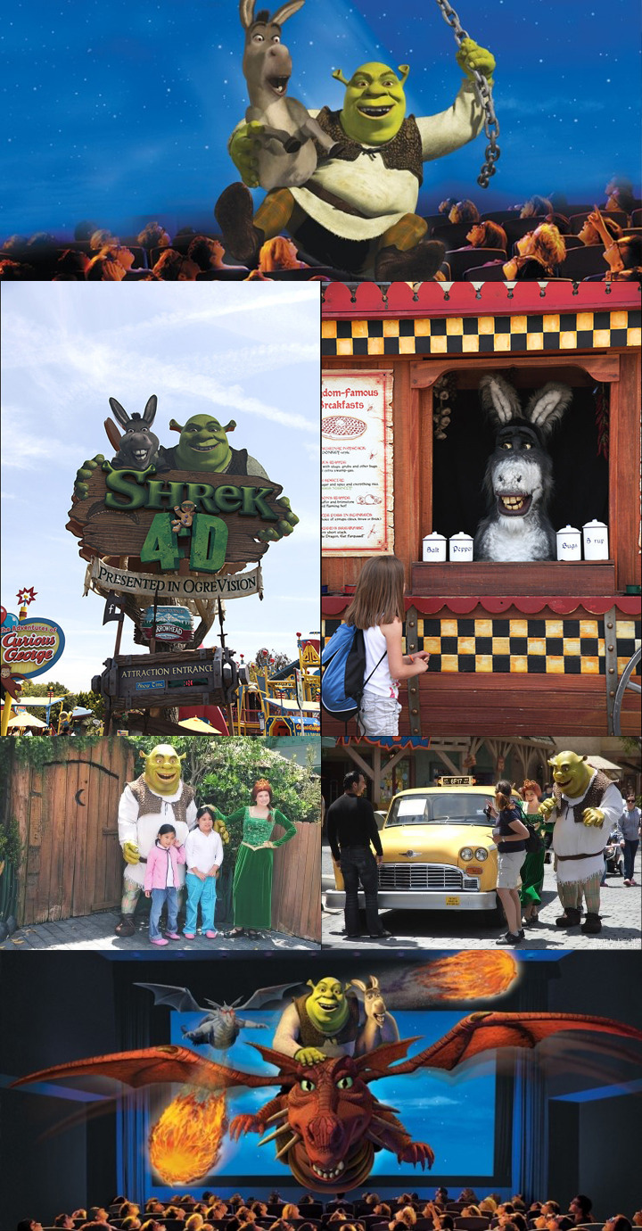 슈렉과 동키가 또 다시 모험의 길을 떠납니다. 슈렉 4-D는 이미 놀라운 3-D에한 차원 더한 초강력 체험을 선사합니다. 액션의 진수가 바로 여러분의 좌석에서부터 시작 됩니다. 4차원의 스릴로 가능해진 상상 초월의 느낌을 기대해 보세요.
