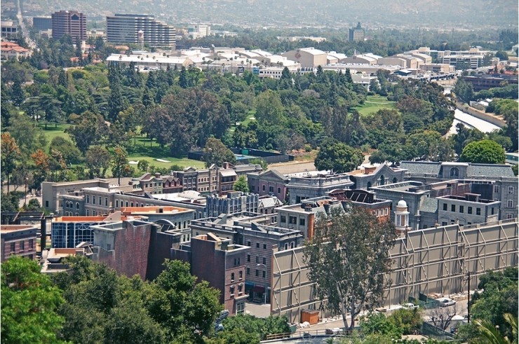 1915년, 유니버셜스튜디오 의 첫 창립자인 독일계 유대인이던 칼래믈 ( Carl Laemmle )이 이 자리에 있던 양계장을 인수하여 할리우드 에 있던 자신의 영화사를 옮겨서 세계에서가장 큰 영화 제작 시설인 유니버셜시티스튜디오 를 열었습니다. 영화 제작 광경을 보여주고 신선한 계란을보너스로 하여 1인당 25센트씩의 요금을 받기 시작한 것이시초가 되었는데 할리우드 와 그리 멀지 않은 곳에 있어 관광객들을 끌어모으기에는 유리하였읍니다.