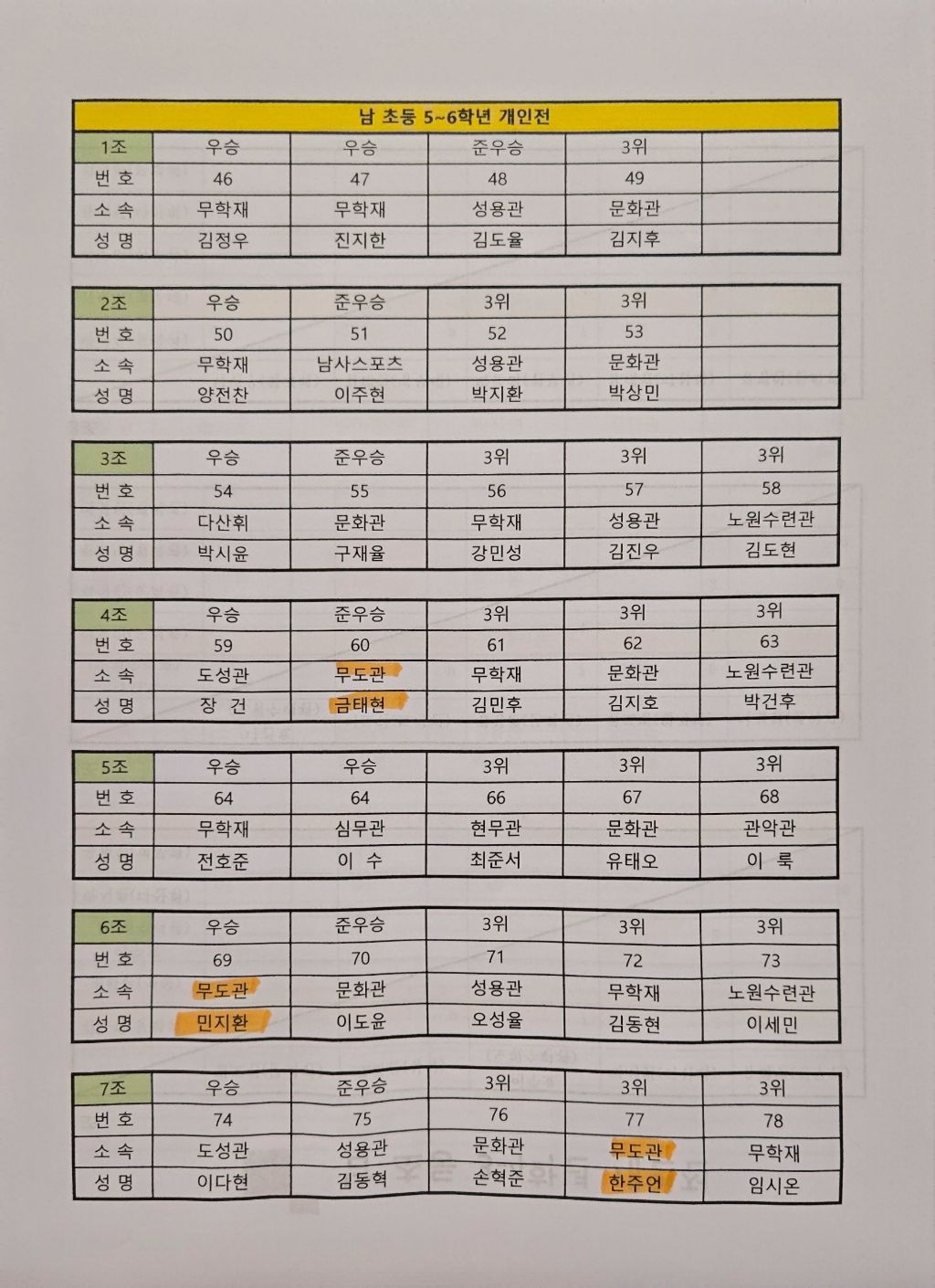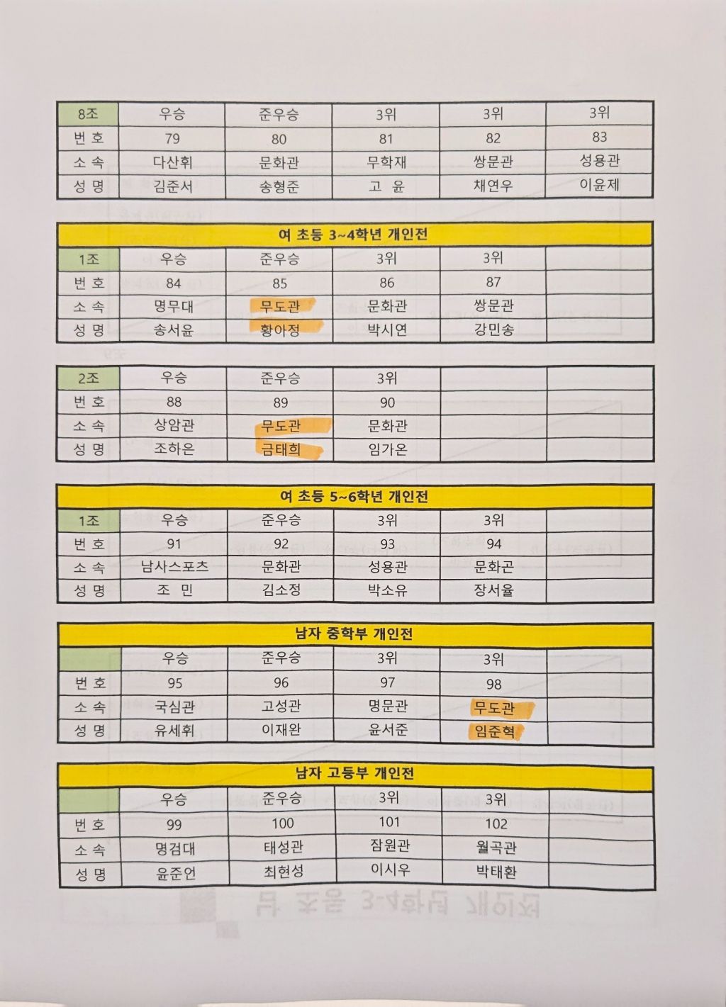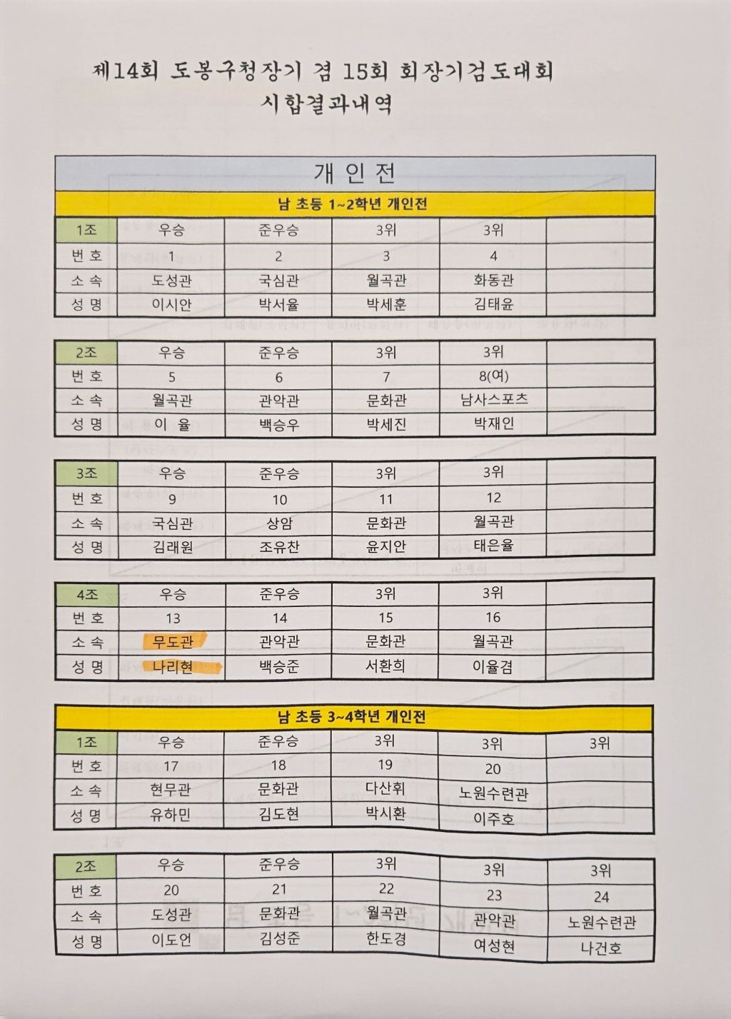 이번 21일 창동문화체육센타에서 치려진 도봉구검도대회에 결과입니다.