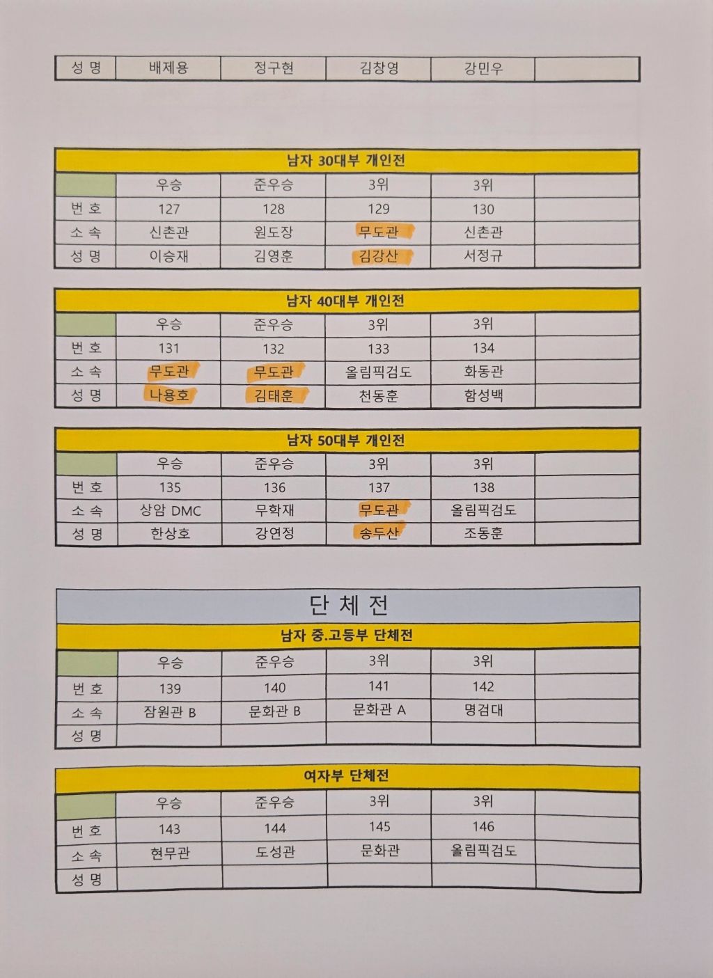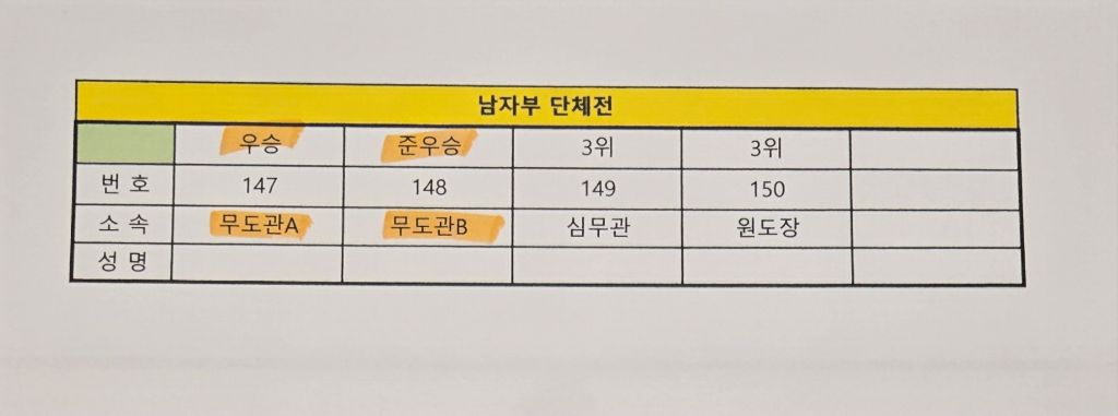남자 단체전 일반부A,B팀이 동반 결승에서 붙었어 우승 준우승을 차지 하였습니다