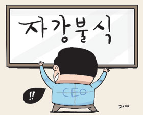 [出典] 역경(易經) 건괘(乾卦) '상전(象傳)'. 천체의 운행은 건실하다[天行健]. 군자는 그것으로써 스스로 힘쓰고 쉬지 않는다[君子以自强不息]. 천체인 대자연의 변화는 정상적이며 어긋남이 없다. 매우 높은 학식(學識)과 덕행(德行)을 가졌거나 높은 관직에 있는 군자는 이것을 본받아서 스스로 몸과 마음을 단련하여 지혜와 품성, 도덕을 닦는데 매우 힘써야 한다는 뜻이다. 주역(周易)에서처럼 스스로 최선을 다해 힘쓰고 쉬지 않는다는 뜻의 자강불식은 오로지 자기 스스로 힘들여 노력하여 멈추지 않는다는 말이다.