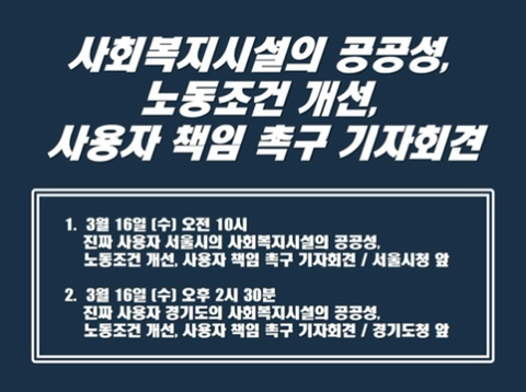 오후2:30 진짜 사용자 경기도의 사회복지시설의 공공성, 노동조건 개선, 사용자 책임 촉구 기자회견 / 경기도청 앞