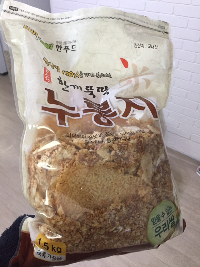 좋아하고 많이먹어서 봉지 누룽지로는 턱없이 부족하여 인터넷을통해 대용량으로 사놓았어요~