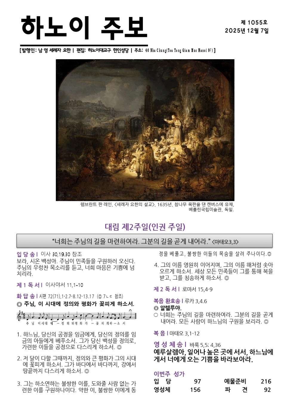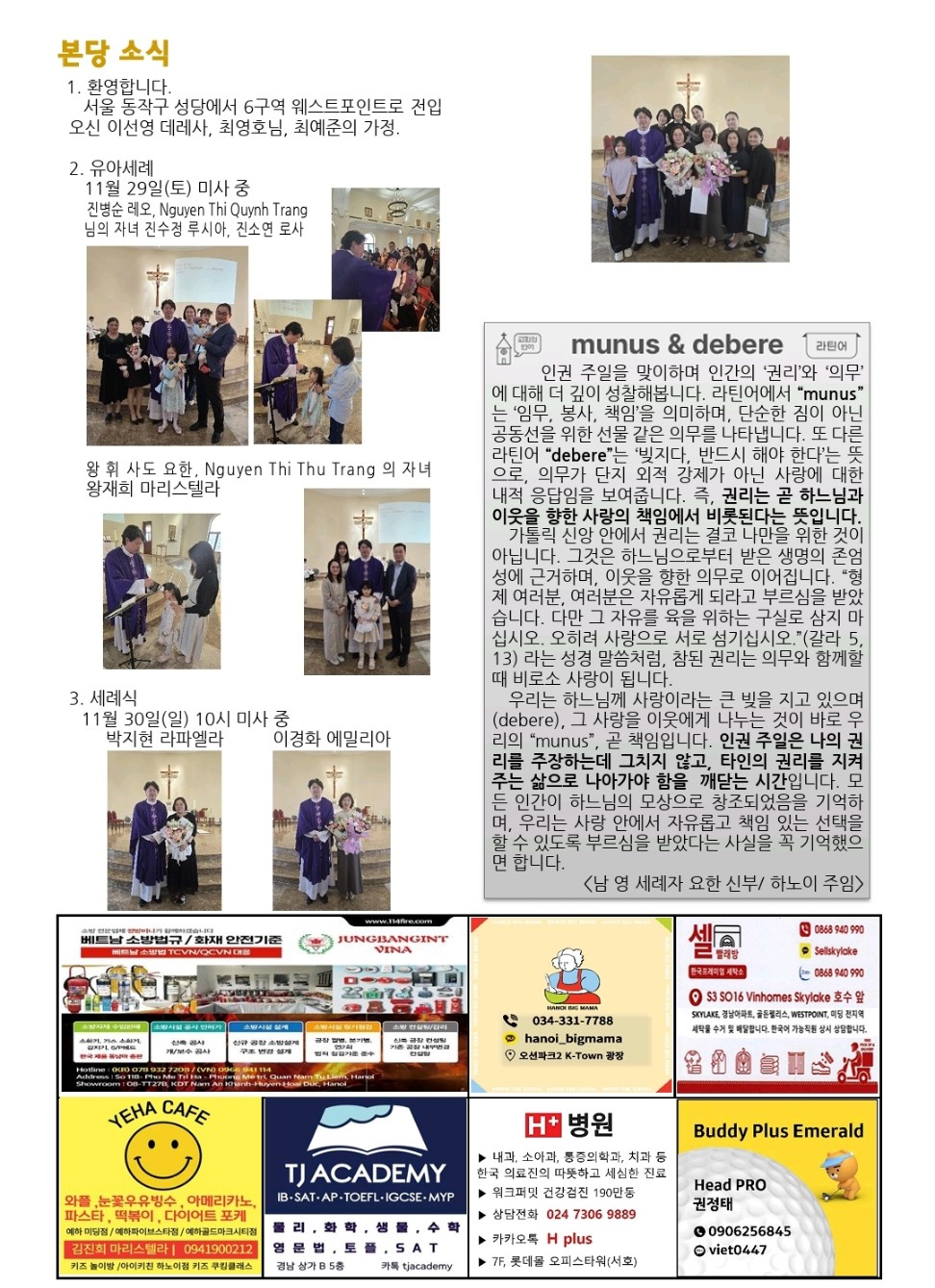 대림 제2주일(25.12.7) 하노이 주보(인권주일) 작성자홍보분과 김율리아^^|작성시간25.12.07|조회수69 목록 댓글 0 글자크기 작게가 글자크기 크게가 다음검색 현재 게시글 추가 기능 열기 북마크 신고 센터로 신고 댓글 댓글 0 댓글쓰기 답글쓰기 댓글 리스트